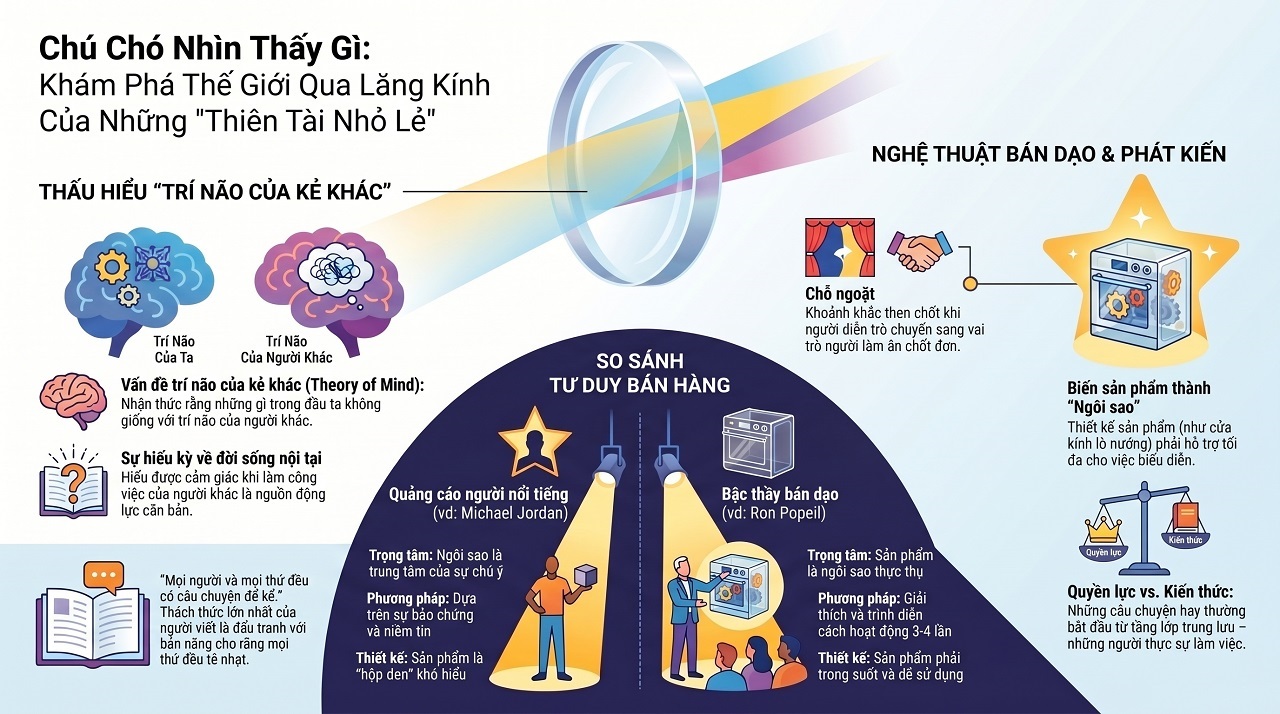 Chú chó nhìn thấy gì không đơn thuần là một cuốn sách cung cấp kiến thức, mà là một lời mời gọi bước vào những cuộc phiêu lưu trong tâm trí. Malcolm Gladwell đã thành công trong việc đấu tranh với bản năng cho rằng “mọi thứ đều chẳng có gì đáng nói”. Bằng cách khai phá sự khác biệt giữa quyền lực và kiến thức, ông chứng minh rằng những câu chuyện hấp dẫn nhất thường nằm ở tầng lớp trung lưu, nơi những con người thực sự làm việc và thấu hiểu sâu sắc chuyên môn của mình.