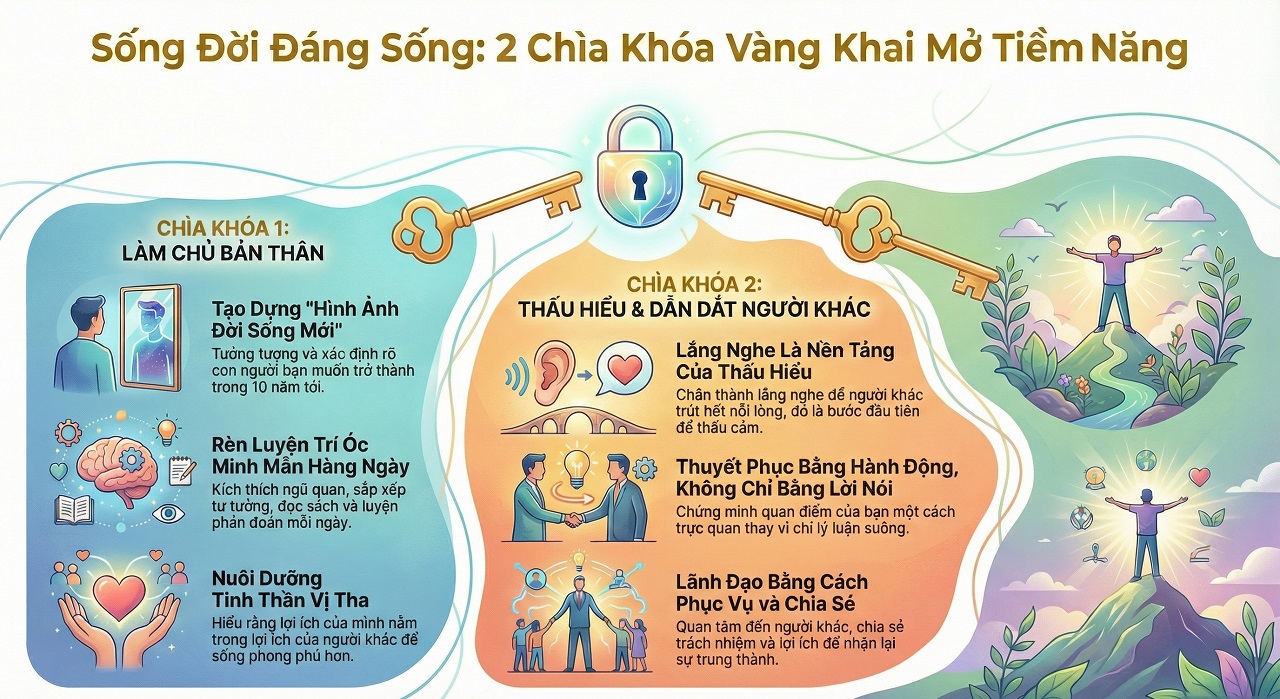 Bài viết này Webtietkiem tổng hợp các nguyên tắc cốt lõi từ tác phẩm “Sống Đời Đáng Sống” của David Guy Powers (do Nguyễn Hiến Lê lược dịch). Nội dung tập trung vào việc rèn luyện trí óc, tình cảm và các kỹ năng giao tiếp để xây dựng một cuộc sống phong phú, ý nghĩa. Những thông điệp then chốt bao gồm: